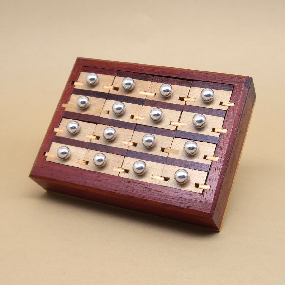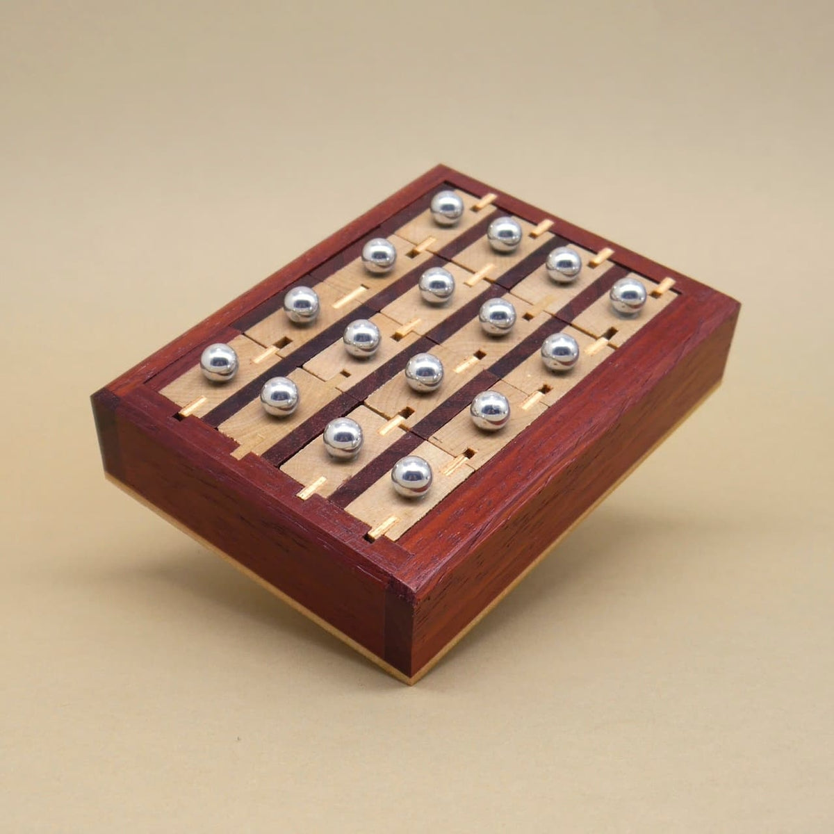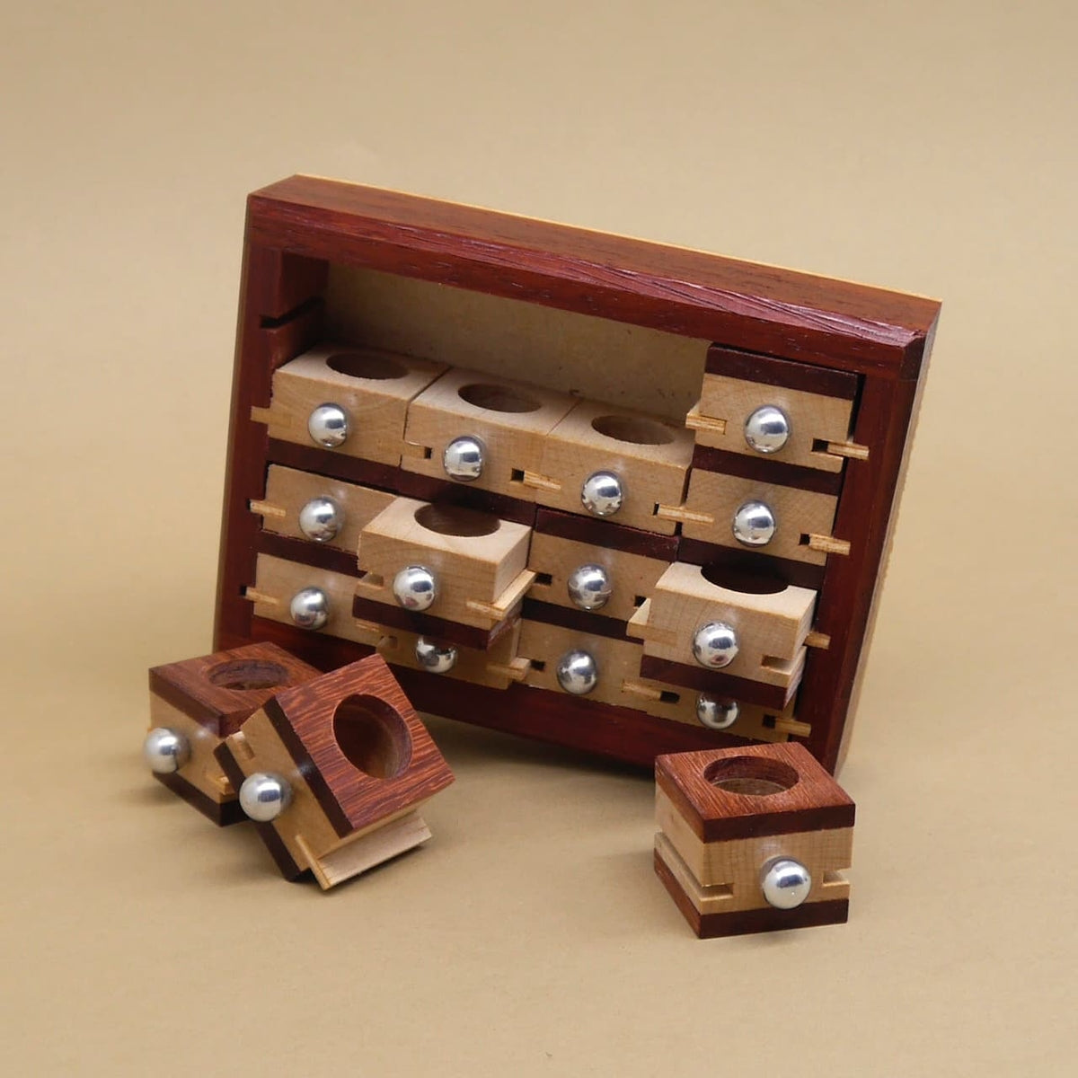 Bei dieser hochwertigen Knobelbox ist logisches Denken, Geduld und ein gutes Gespür für logisches Packen gefragt. Ziel ist es, die einzelnen Schubladen herauszunehmen und dies korrekt wieder einzusetzen. Das Spielprinzip vereint die Faszination eines klassischen Denkspiels mit der Haptik und Eleganz edel verarbeiteten Holzes – ideal für alle, die gerne tüfteln und rätseln.