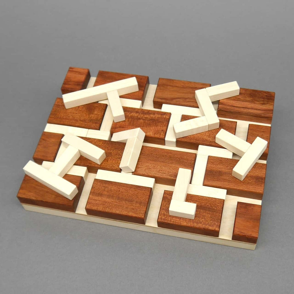 Gefertigt aus hochwertigem Hartholz wie Ahorn und Bubinga, vereint "BRICK WALL" Ästhetik und Funktionalität. Die natürlichen Holzmaserungen und die präzise Verarbeitung verleihen jedem Teil des Puzzles eine edle Optik und eine angenehme Haptik. Die unterschiedlichen Farben der Hölzer sorgen zudem für einen ansprechenden Kontrast und machen das Puzzle zu einem echten Hingucker.