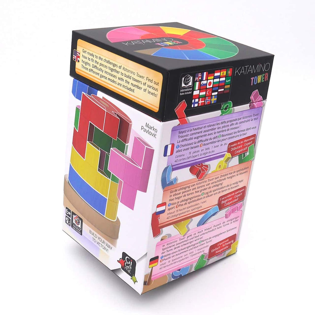 Das Spiel besteht aus einer Vielzahl von Holzblöcken in unterschiedlichen Formen und Farben sowie einem speziellen Spielbrett, das es den Spielern ermöglicht, vertikale Strukturen zu bauen. Das Ziel von Katamino Tower ist es, die vorgegebenen Blöcke so zu stapeln, dass sie eine bestimmte Struktur ergeben und vollständig in das Spielbrett passen.