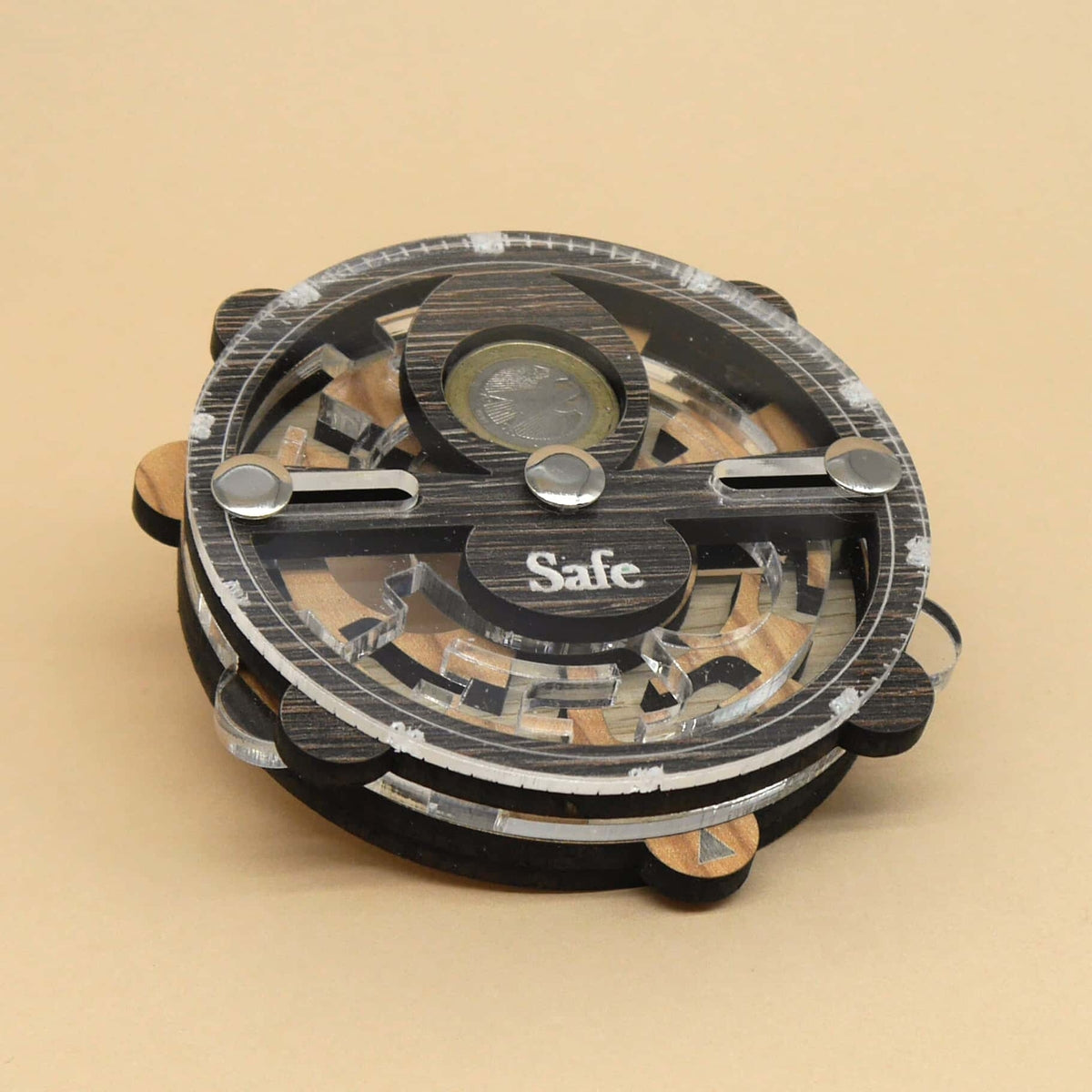 Ob als Knobelaufgabe für zwischendurch oder als dekoratives Objekt auf dem Schreibtisch – mit dem SAFE von Siebenstein Spiele verschenkt man nicht nur ein Spiel, sondern ein Erlebnis. Wer wird es schaffen, das Rätsel zu lösen und die Münze aus dem Safe zu befreien?