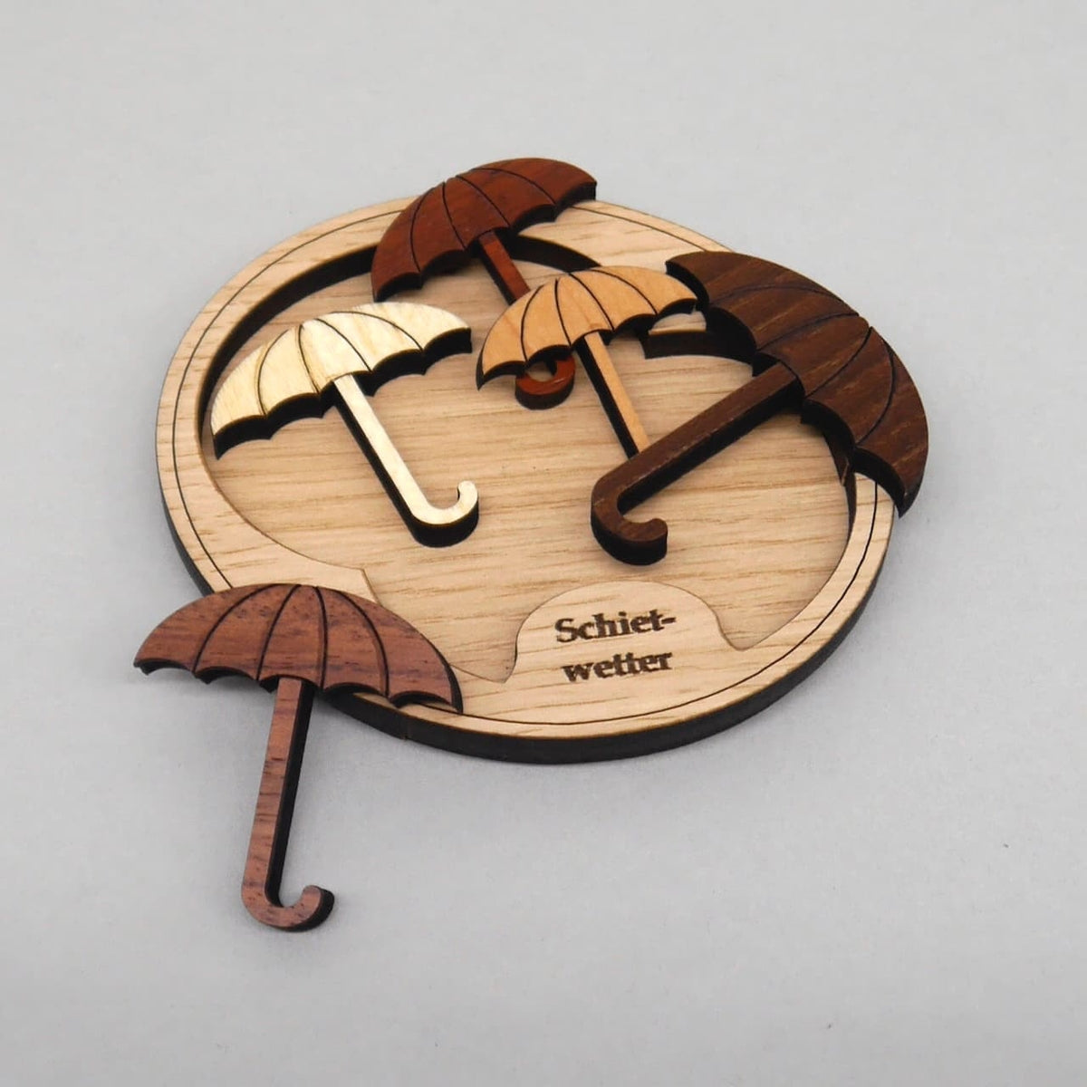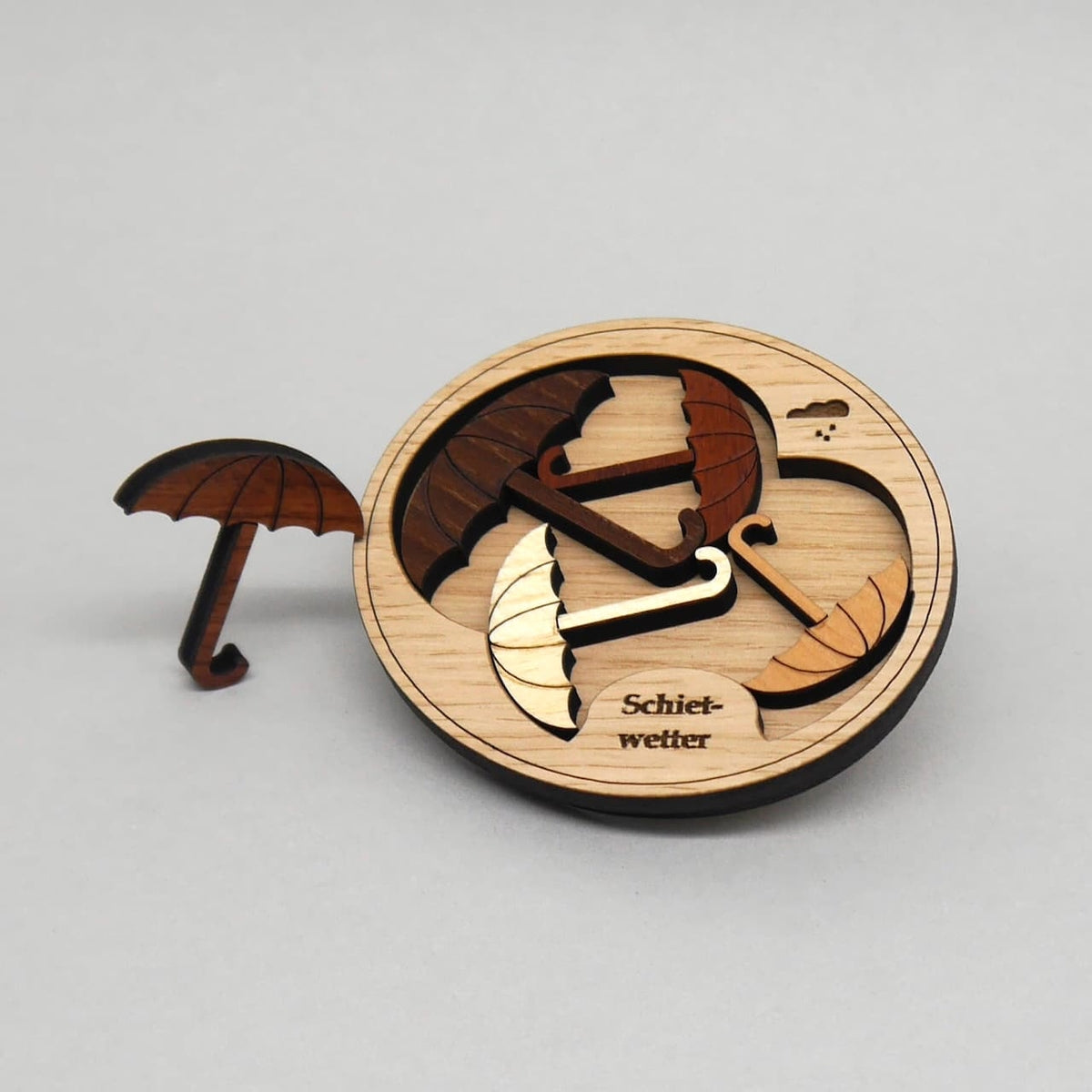 Schietwetter ist ein cleveres Holz-Legepuzzle – das ideale Denkspiel für Papa oder Freunde. mehr