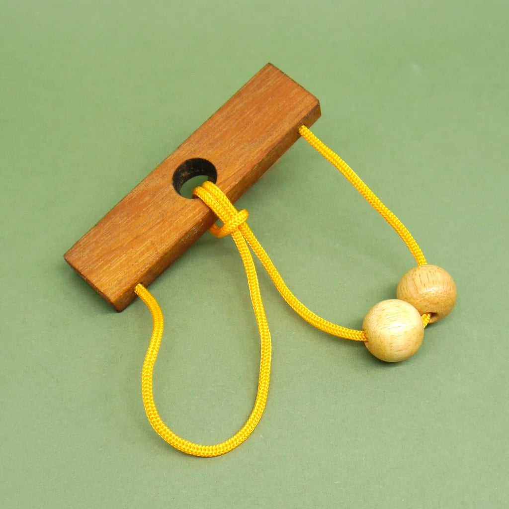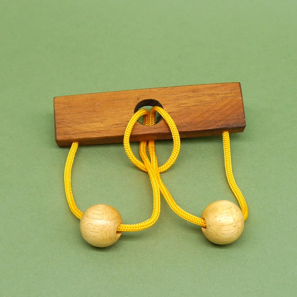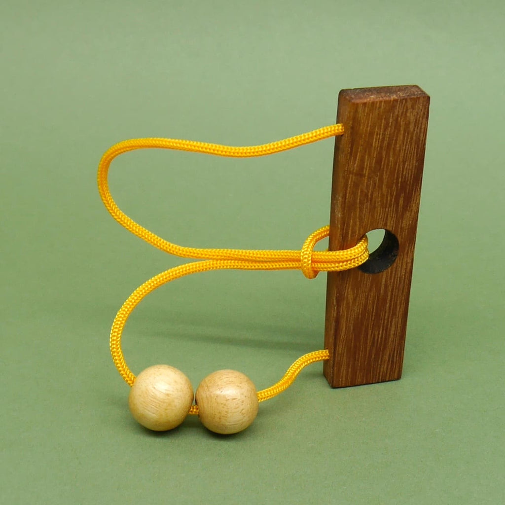 Das Seilpuzzle SCHLAUFENPUZZLE von ROMBOL Denkspiele ist ein faszinierendes Geduldsspiel, das sowohl Kinder als auch Erwachsene begeistert. Es besteht aus einem Holzstück mit zwei Schlaufen, auf denen jeweils eine Kugel schaukelt. Mit etwas Geduld und Geschicklichkeit kann man die Kugel von einer Schlaufe zur anderen bewegen, sodass eine Schlaufe keine Kugel mehr hat und die andere zwei Kugeln besitzt.