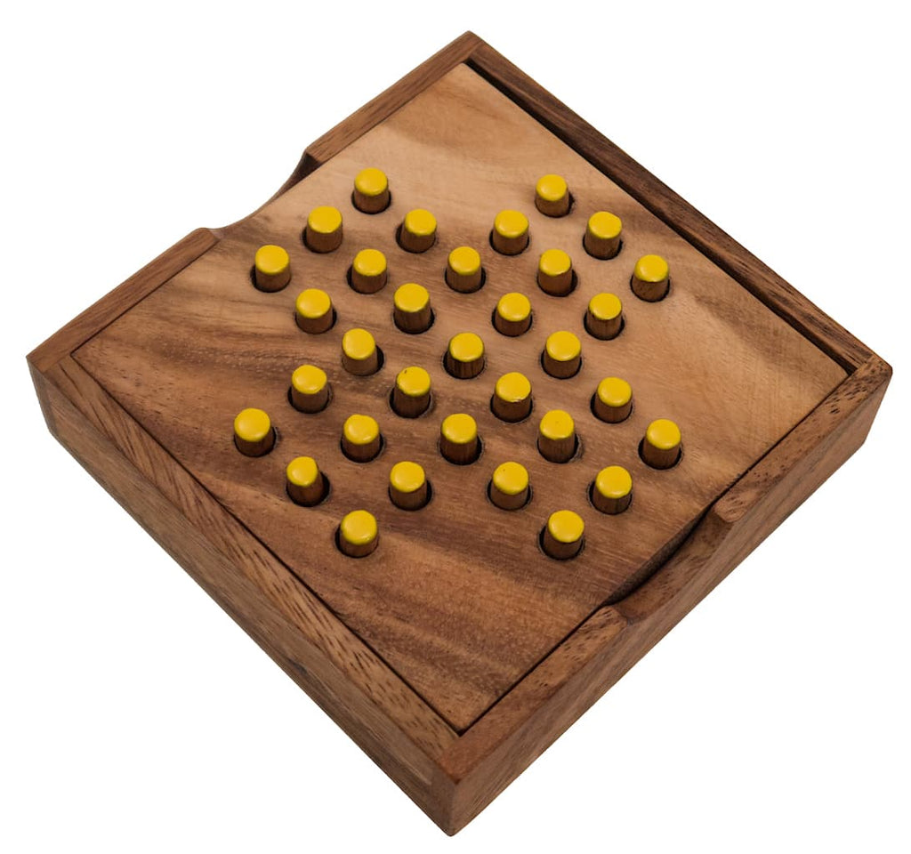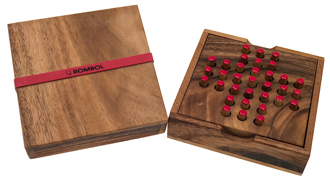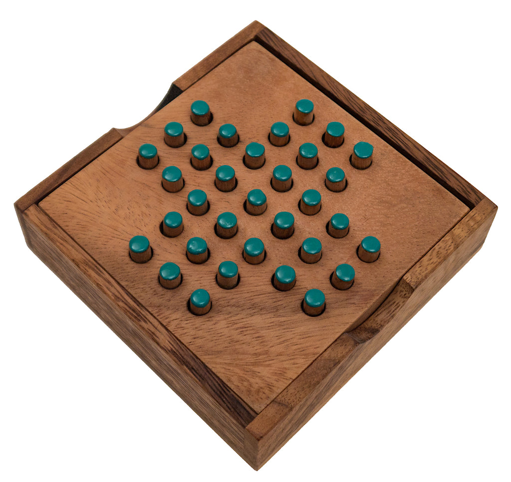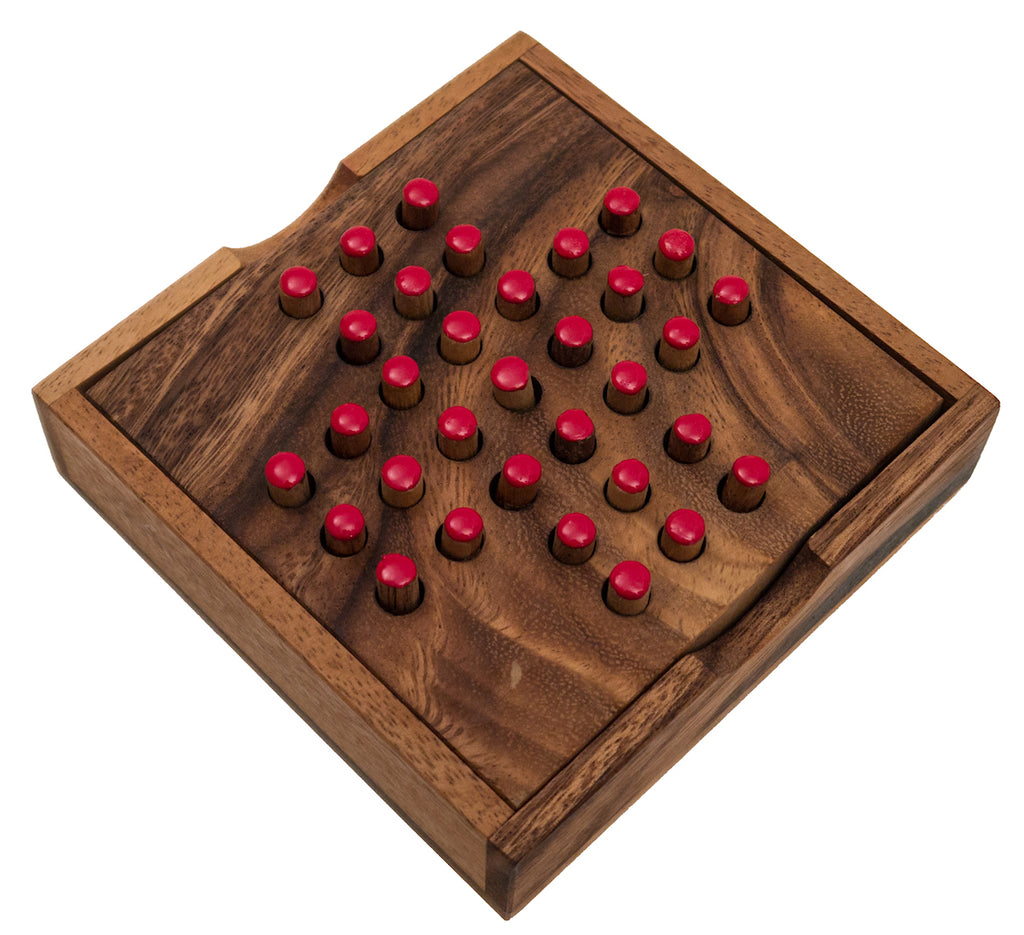 This simple yet exciting and entertaining game is popular with young and old alike. The rules are very simple, so even children can play it on their own very quickly. Once you've found the familiar solution (only one piece remains on the board, in the middle), you can specify many more starting and finishing positions.