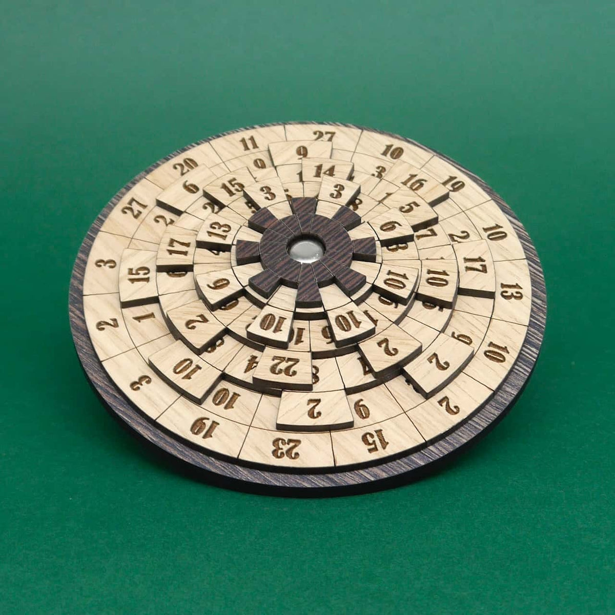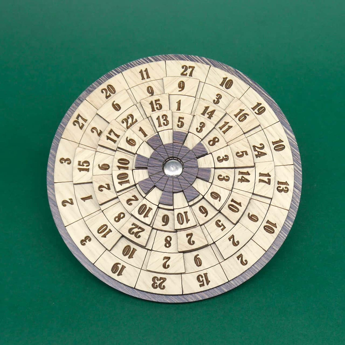 Thales von Siebenstein Games is a fascinating number puzzle for children and adults that challenges their brains and their ability to combine numbers. This clever brain teaser involves arranging all the numbers on the rotating plates so that the sum of the four numbers in each row is the same. Sounds simple? It isn't – because the round plates can be rotated independently of each other, offering countless possible combinations.