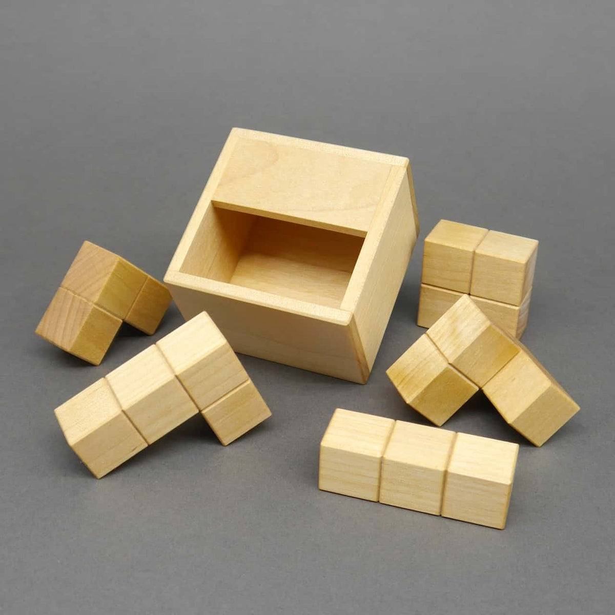 The goal of the game: All the pieces must be placed in the correct order in the wooden box. What sounds simple quickly develops into a complex task requiring patience, skill, and a good sense of spatial awareness. Hidden mechanisms and precise fitting ensure exciting aha moments and lasting enjoyment.