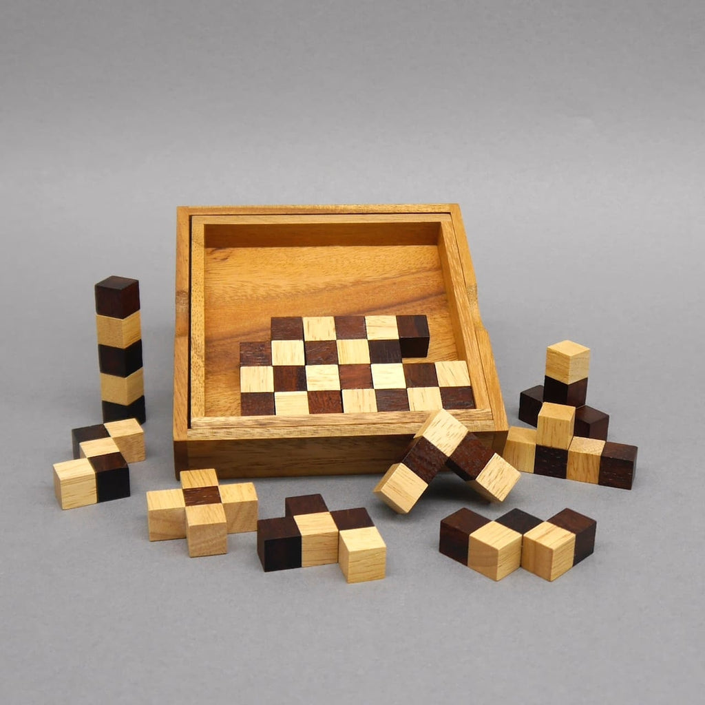Whether played alone or with friends, the chessboard puzzle promotes concentration, logical thinking, and spatial awareness. It's both a creative puzzle game and a decorative object for any living room or office. The exquisite craftsmanship of sustainable wood gives the game a special feel and makes it a long-lasting companion for all puzzle fans.