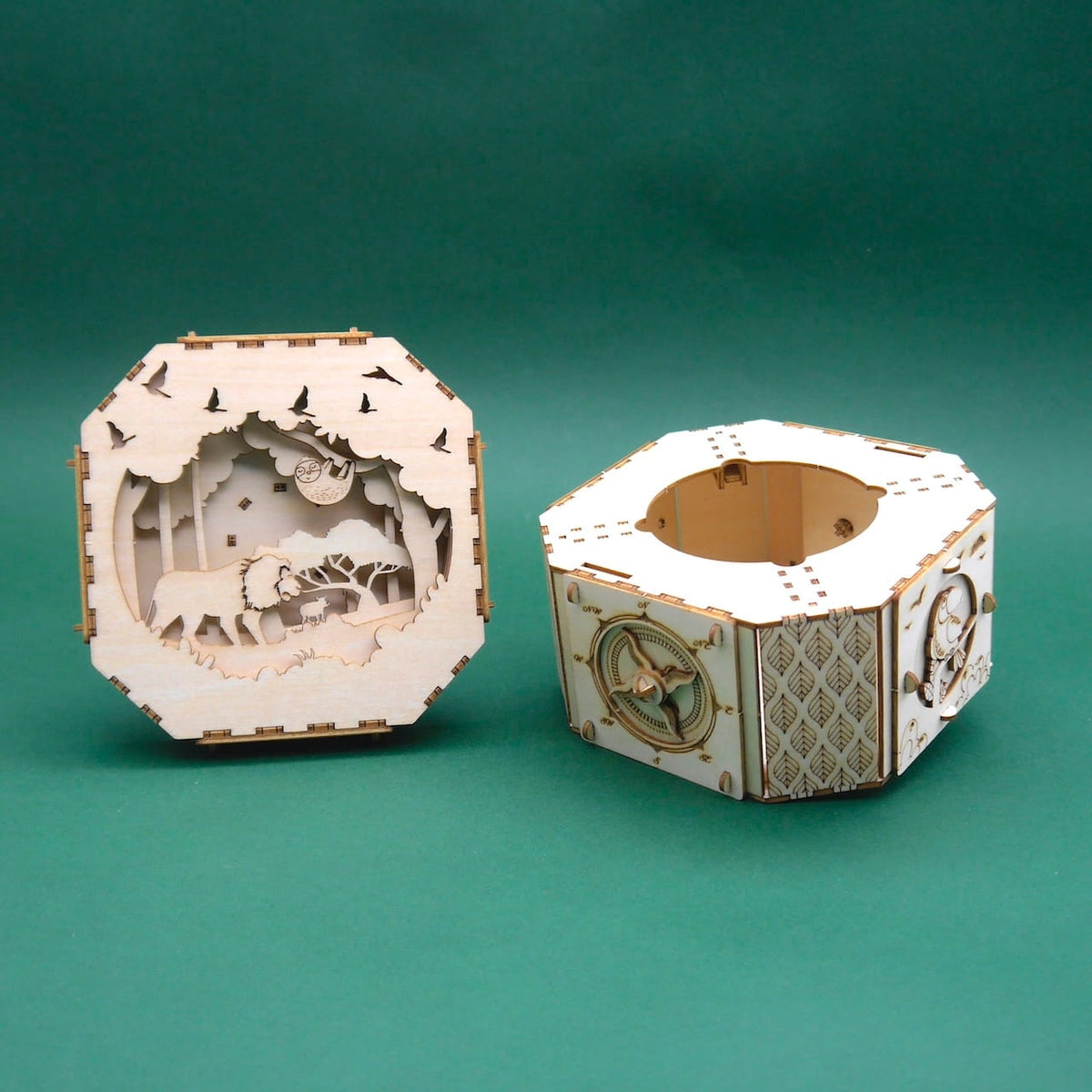 The JUNGLE BOX comes as a kit with four panels from which the pieces can simply be pushed out. No tools are required, and assembly takes approximately 60 minutes. Whether used as a puzzle box, magic box, stylish gift packaging, or original decoration, this wooden box is guaranteed to be an eye-catcher.