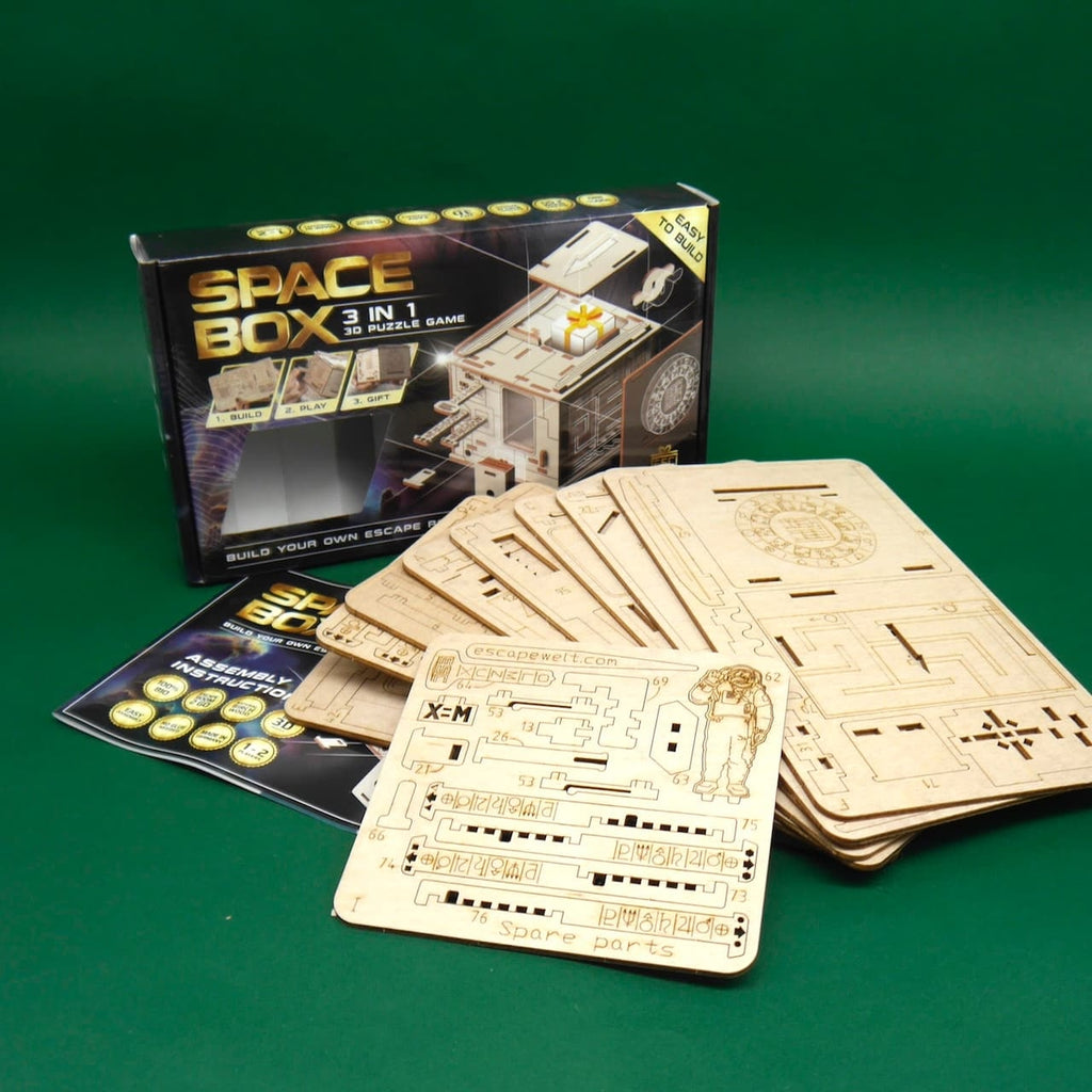 The Space Box from Escape World brings the experience of a real escape room right to your home – in a handy format. This interactive 3D wooden puzzle is a fascinating puzzle game in which you solve puzzle after puzzle to open a mysterious compartment inside. Every step is based on logical thinking; there's no chance here. Mechanisms, symbols, and hidden clues challenge your spatial awareness and ensure an exciting experience with a playing time of 90 to 120 minutes.