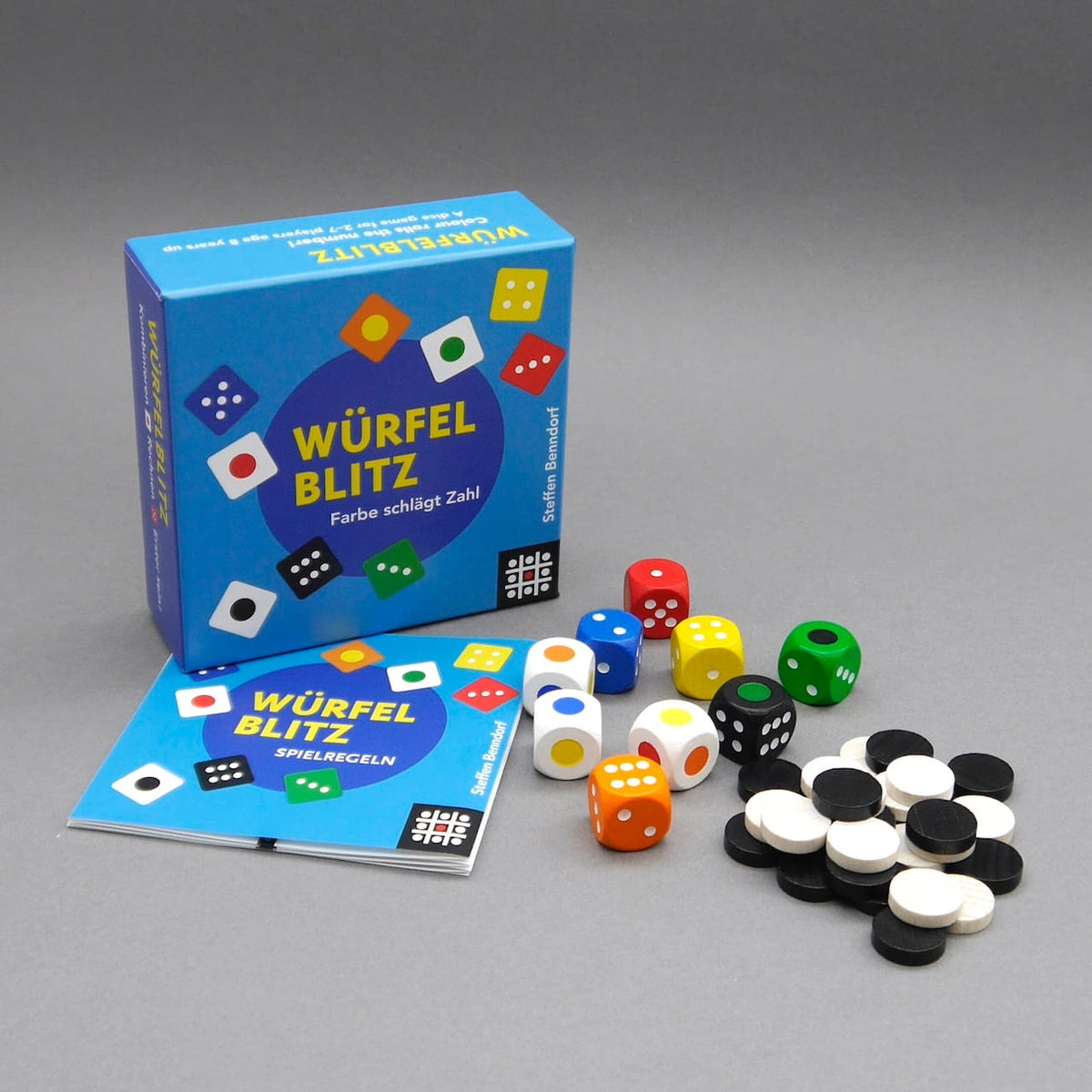 Whether as a children's game, color game, family game, or fast-paced math game: Würfelblitz delights with simple rules and instant fun. After a few minutes, you can start: roll, check, calculate, call out – and the next round begins. Whether playing with two or in a large group, everyone remains active at all times because every dice combination opens up new opportunities. Additional house rules provide even more variety, for example, only counting odd numbers, rewarding color series, or awarding extra points for particularly fast correct answers. This keeps every game surprising, lively, and always new.