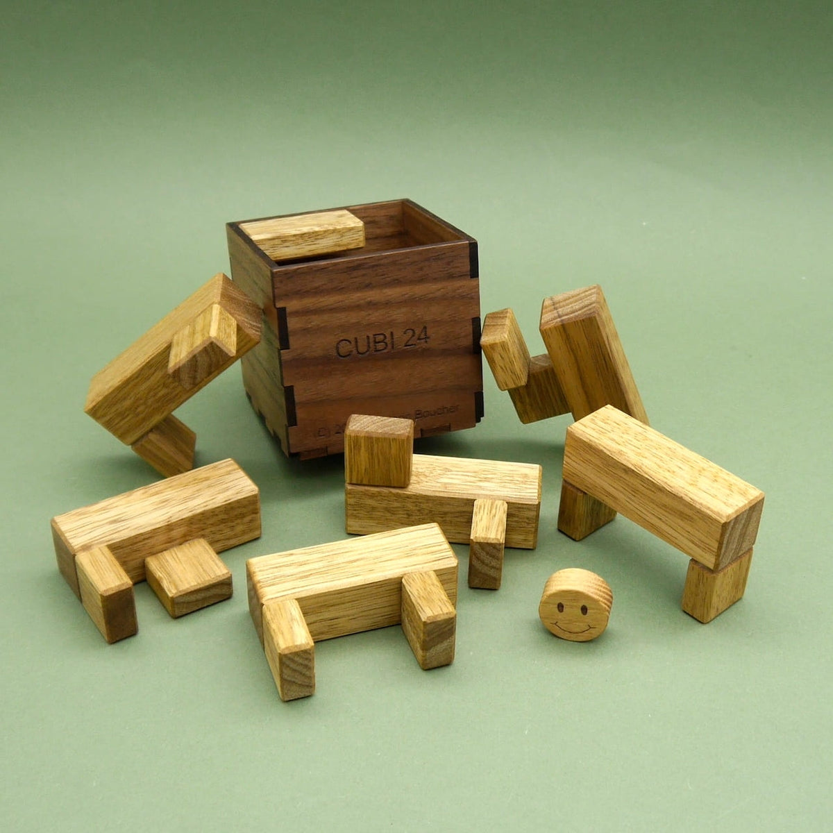 Das Cubi 24 ist ein außergewöhnlich anspruchsvolles 3D Packing Puzzle, das von Frederic Boucher entworfen und von Pelikan Puzzles in hochwertiger Handarbeit gefertigt wurde. Als Krönung der beliebten Cubi-Reihe richtet sich dieses Holzpuzzle gezielt an erfahrene Tüftler, die komplexe Herausforderungen lieben und ihr räumliches Denken auf die Probe stellen möchten.