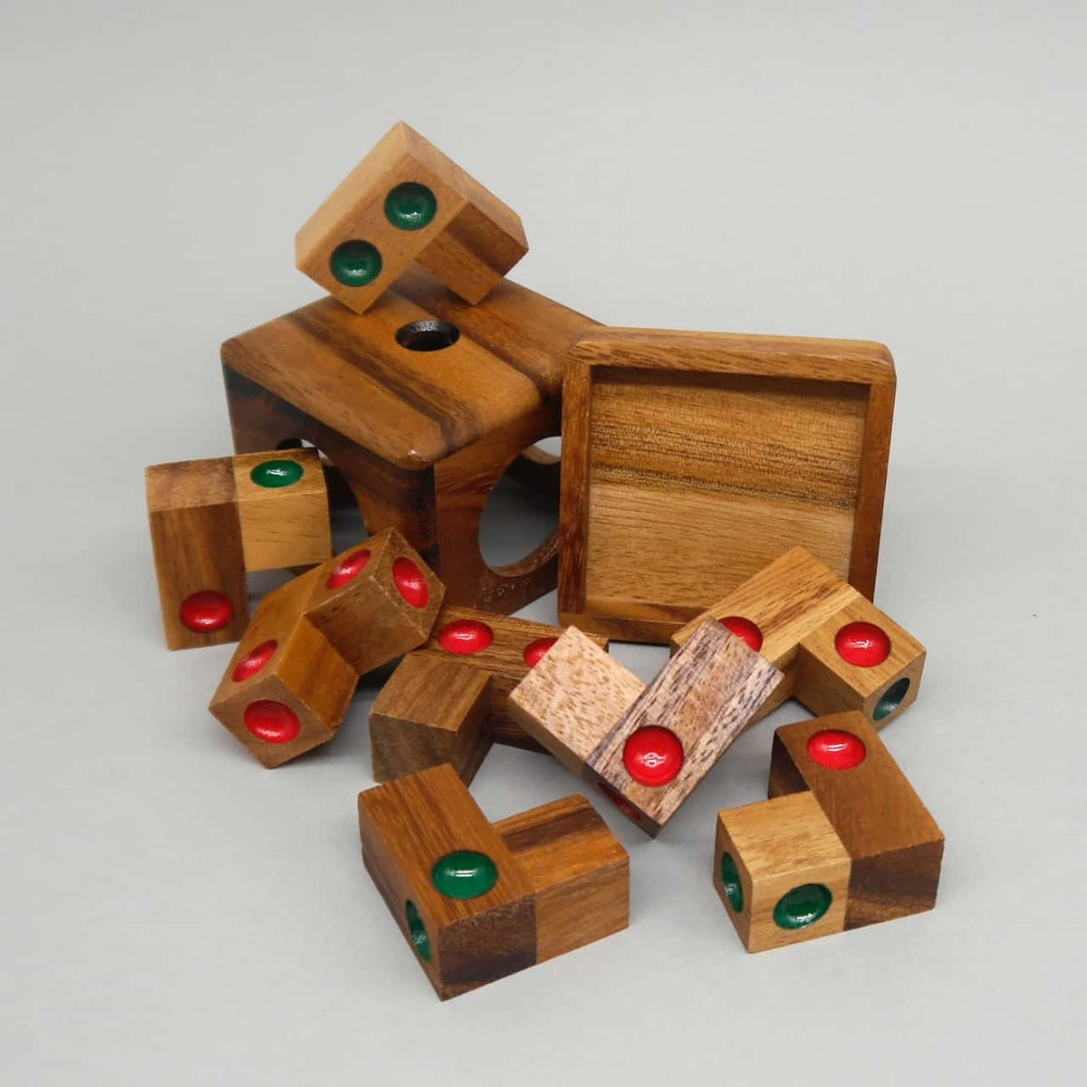 Das Holzpuzzle "Würfel in der Box" von ROMBOL Denkspiele ist ein faszinierendes Geduldsspiel, das Ihre Geduld und Ihr räumliches Vorstellungsvermögen auf die Probe stellt. Gefertigt aus hochwertigem Holz, überzeugt dieses Puzzle durch seine edle Optik, angenehme Haptik und sorgfältige Verarbeitung. Die einzelnen Bausteine sind unterschiedlich geformt und müssen so angeordnet werden, dass sie exakt in die Box passen und einen perfekten Würfel bilden.